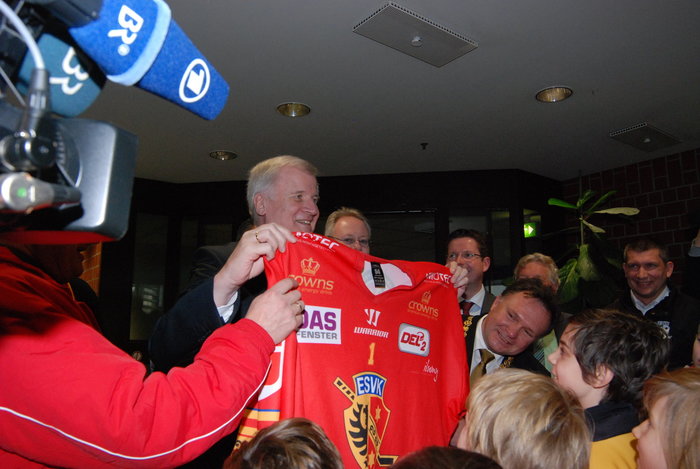 Bayerns Ministerpräsident Horst Seehofer wurde bei seinem Besuch in Kaufbeuren ein Trikot überreicht.