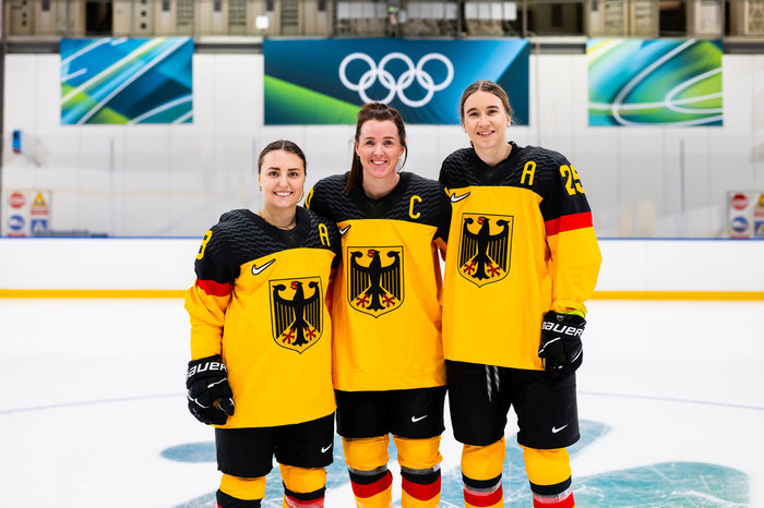 Ronja Hark, Daria Gleißner und Laura Kluge (von links nach rechts) führen das DEB-Team der Frauen bei Olympia 2026 an.