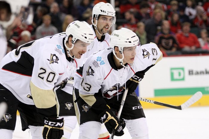 Riley Holzapfel (Mitte) von den Wilkes-Barre/Scranton Penguins wechselt zu HV 71 Jönköping