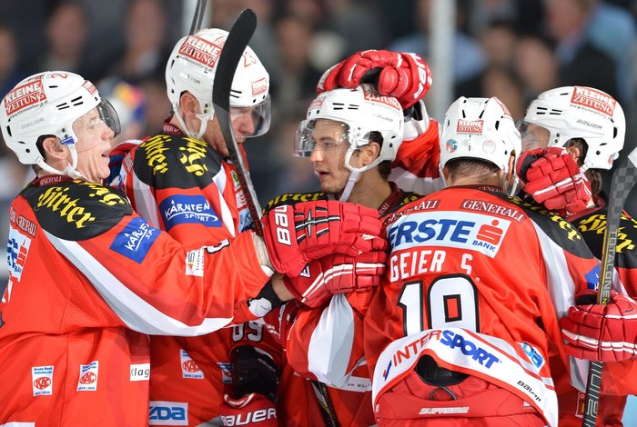 Aufatmen beim EBEL-Champion Klagenfurt: Mike Siklenka (zweiter von links) ist wieder da