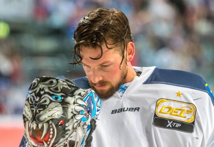 Nachdenklich: Timo Pielmeier, Torhüter des ERC Ingolstadt, äußert sich zur aktuell schwierigen Situation der Panther in der DEL. Foto: City-Press