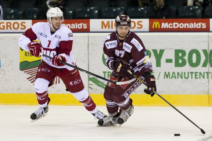 Einen Doppelbesitz eines Aktionärs wie bei Genève-Servette (dunkle Trikots, hier Marco Pedretti) und dem HC Lausanne (weiße Trikots, hier Larri Leeger) durch Hugh Quennec soll es in der NLA in Zukunft nicht mehr geben.