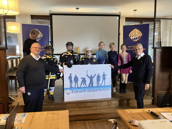 Germering. Kurz vor den Toren Münchens. Es ist kalt an diesem Samstagvormittag Ende November, unter Null Grad. Auf der Eisfläche im Polariom spielen zwei Nachwuchsmannschaften – erst quer, dann gibt es später noch individuelles Training. Passende Rahmenbedingungen für etwas, das alle an diesem Tag umtreibt: Die Zukunft ihres Sports und die Zukunft ihrer Eishalle. „Zukunft braucht Eis“ lautete das auf fünf Jahre angelegte Projekt, das der Bayerische Eissport-Verband (BEV) an diesem Vormittag den rund 70 Interessierten in der vollen Stadiongaststätte vorstellt. „Kümmert euch um uns und unseren Eissport“, lautete auch die Botschaft von sechs Eishockeyspielern und Eiskunstläufern an den Verband.